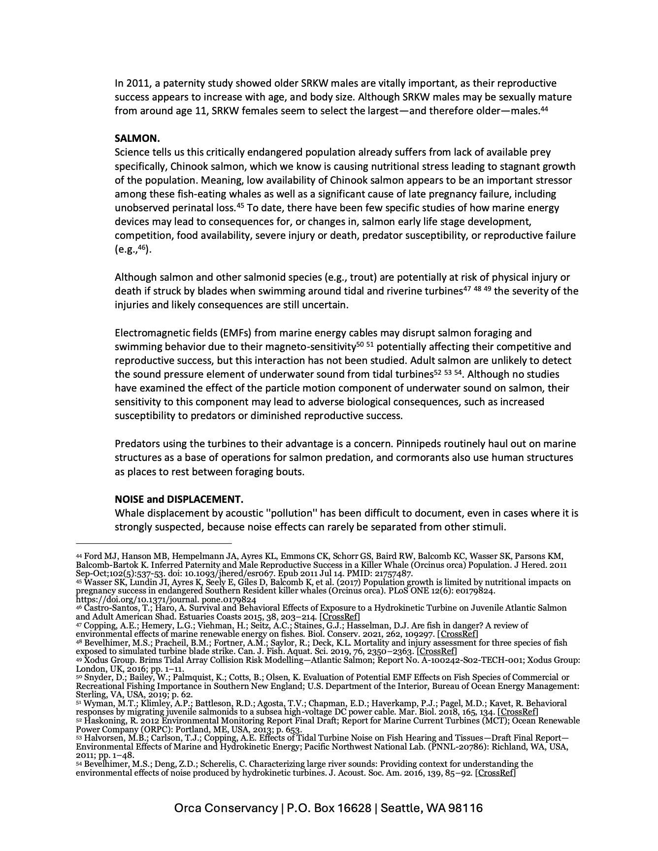 Orca Conservancy’s comments to FERC Opposing the Rosario Strait Tidal Turbine Project within SRKW Critical Habitat