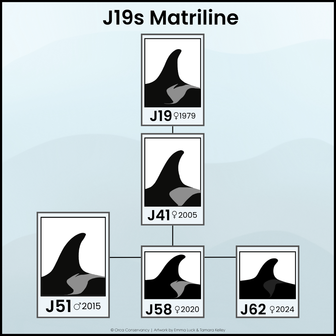 Hy’Shqa is a mother of two, J49 T’ilem I’nges, and the newest member of J Pod, J59, a female calf who was first spotted in March of 2022.
