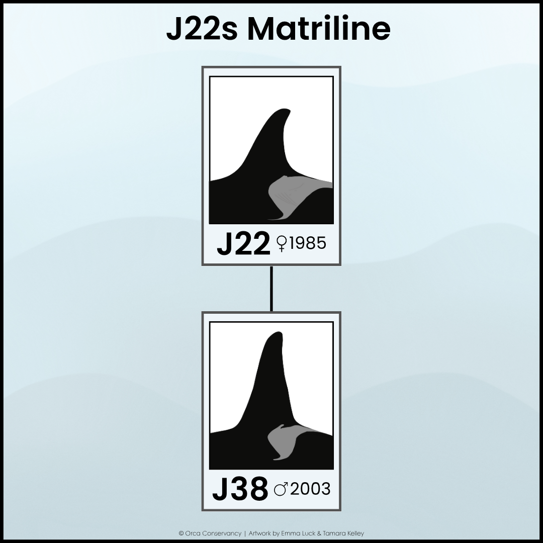 L22 has had a total of three calves, L75, L79, and L89, all of which are deceased. Prior to the loss of her last remaining offspring L89 Solstice (male, declared deceased in 2022), the two would often travel alone.
