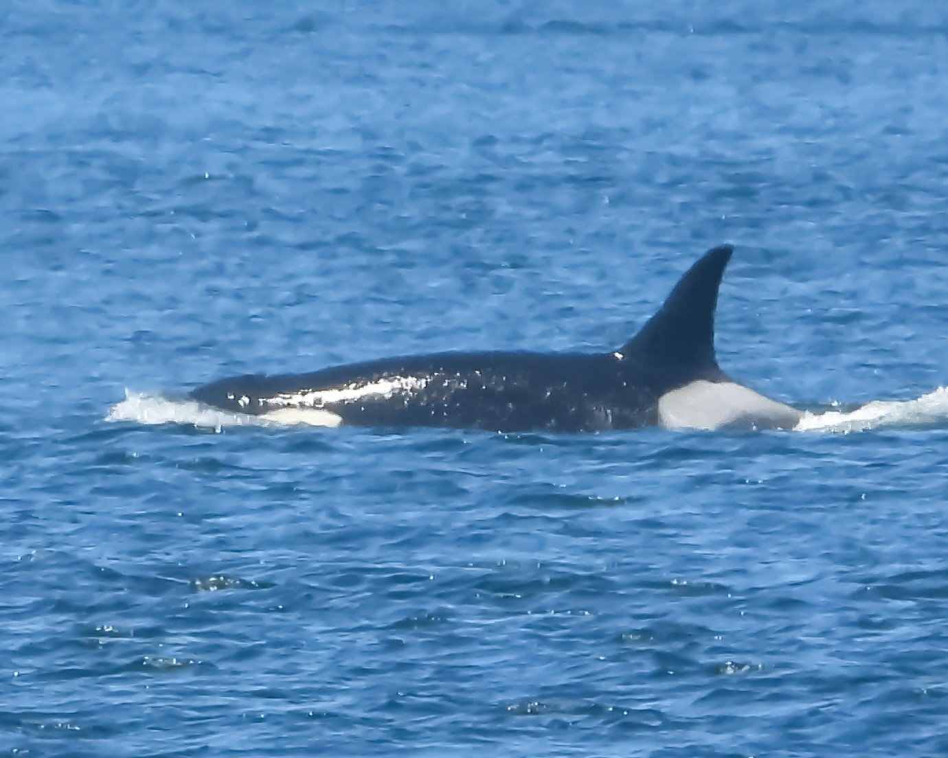 L105 is easily recognized by his tall dorsal fin and brightly pigmented open hook saddle.
