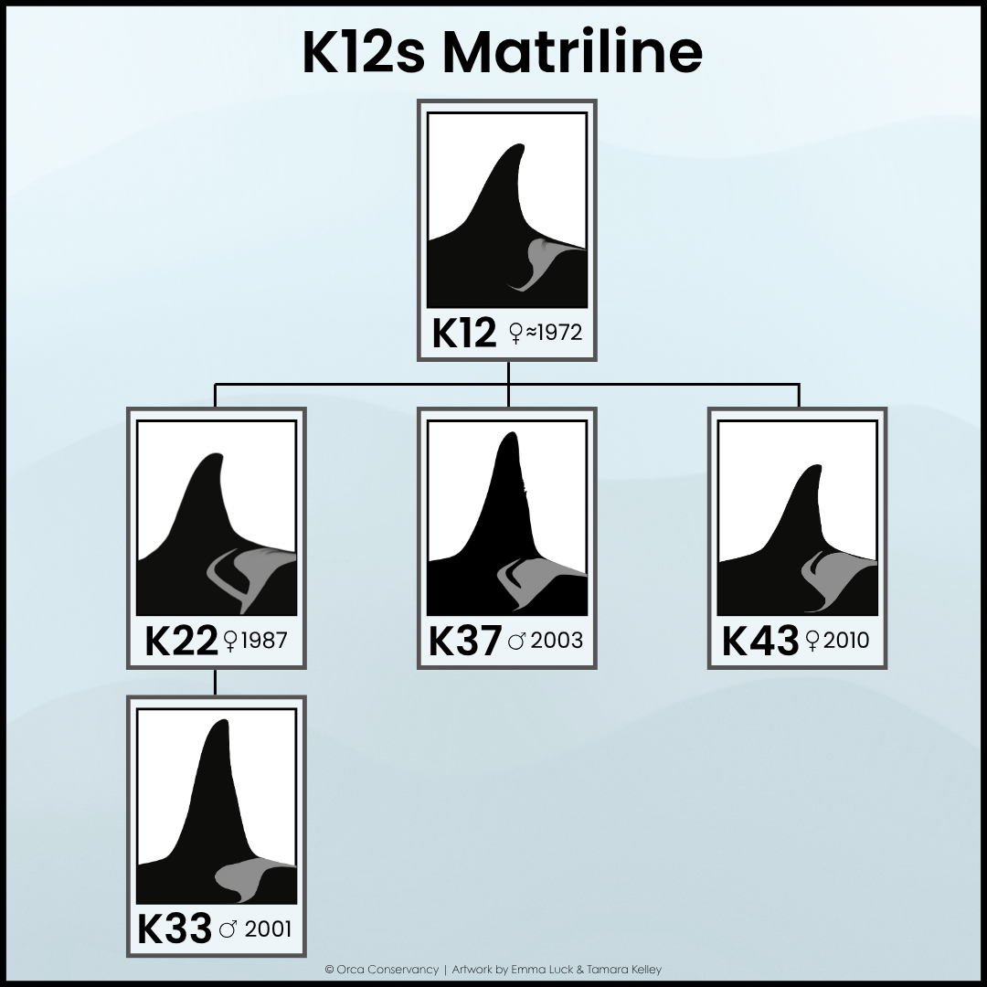 Since the loss of all her offspring, she now travels with the remaining L12s, which includes the L11s and other individuals including L25 and her presumed cousin L85 mystery.