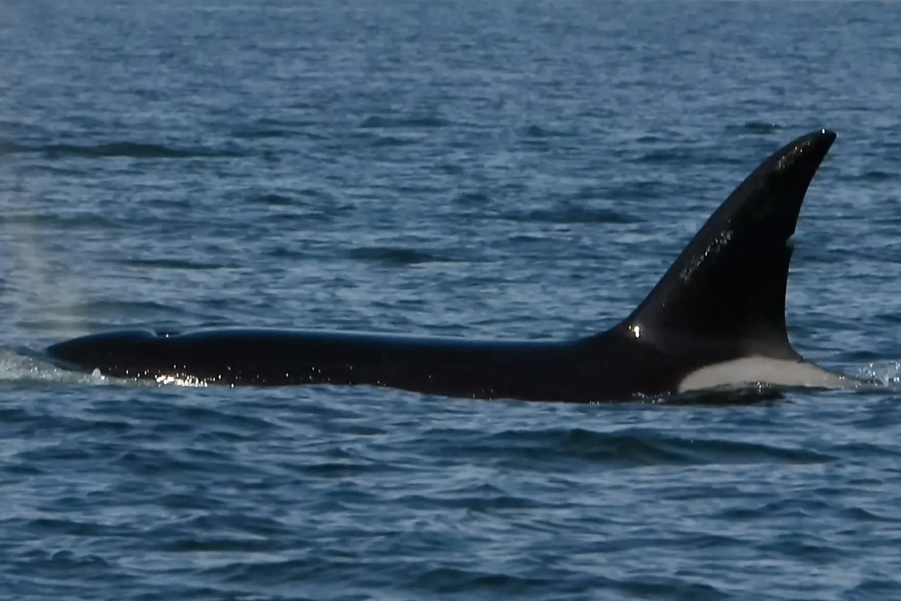 T35A2 is the second offspring of T35A and was born in 2013. The sex has yet to be determined. The nickname Topaz is after the gemstone and keeps with the naming theme of its siblings. It has a short and slightly wide dorsal fin in a prominent crescent shape that is slightly thinner than her siblings.